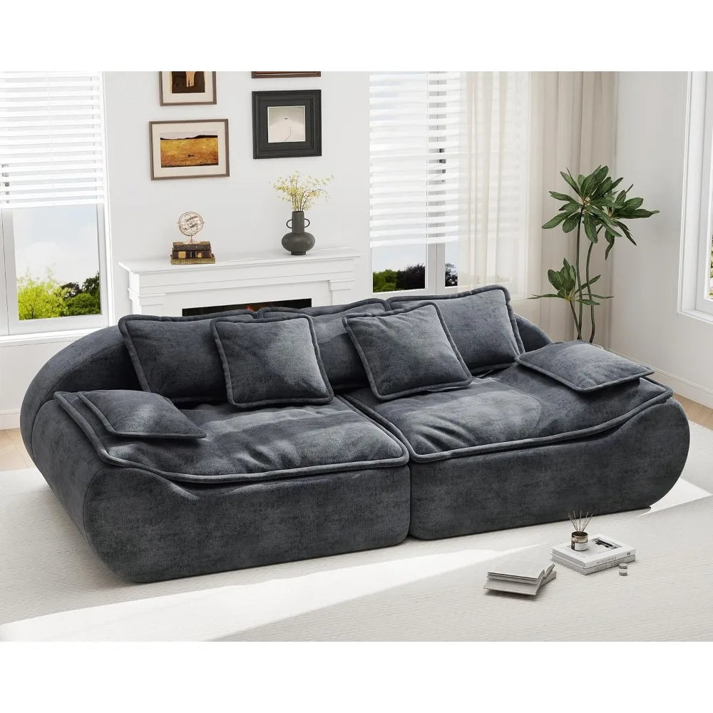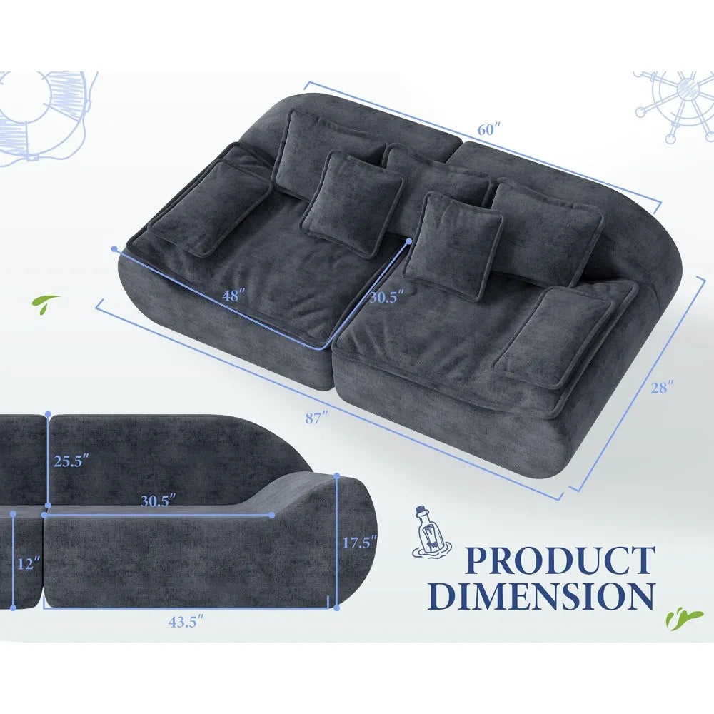 Sectional Sofa Couches 3-Seater Modular Sofa, 87'' Comfy Loveseat with Throw, Deep Seat Small Sofa for Compact Space