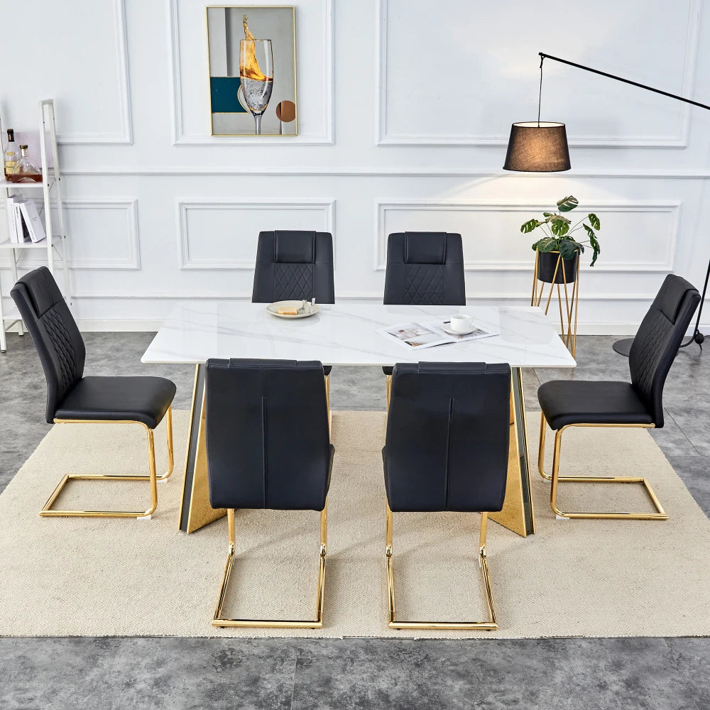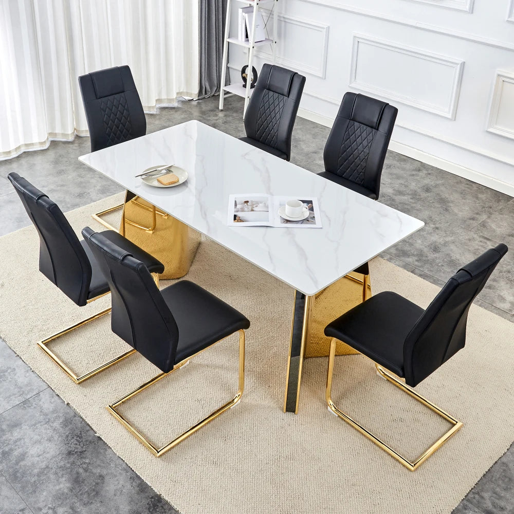63"x31.5x30" Luxurious Snow Mountain Patterned Sintered Stone Table with Golden Stainless Steel Butterfly Legs