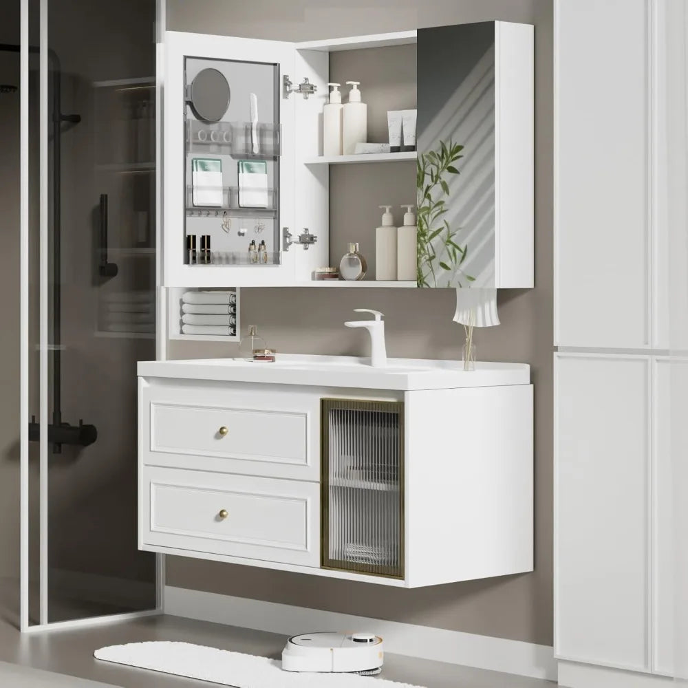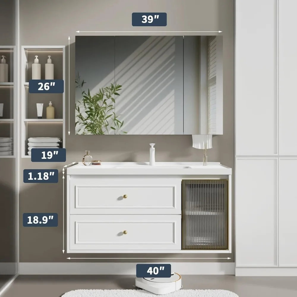 40" Floating Bathroom Vanity with Sink Matching Medicine Cabinets Mirror with Storage, Modern Wall Mounted Bathroom Vanities