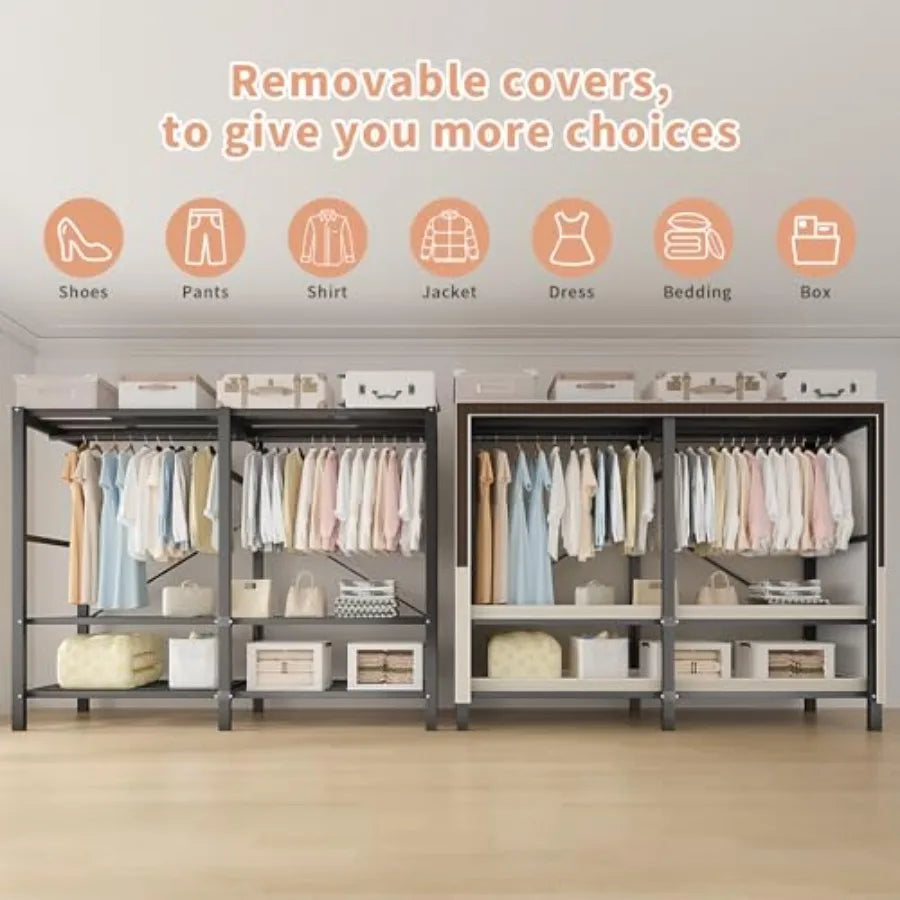 Clothes Rack Heavy Duty Garment Clothing Rack Steel Freestanding Portable Wardrobe Closet Organizer for Hanging Clothes with 2