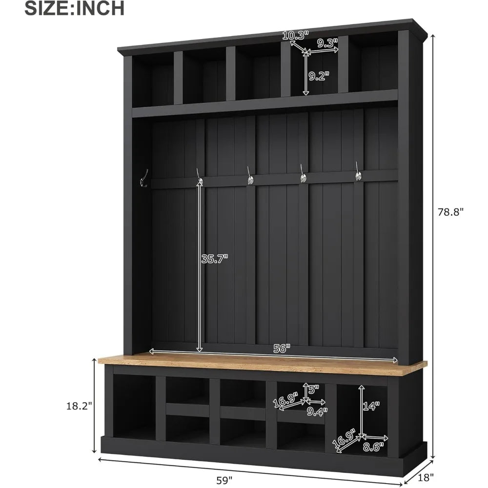 Wide Hall Tree with Bench and Shoe Storage for Entryway, 78''H Entryway Shoe Cabinet with Top Shelves and 6 Hooks, Hallway Coat