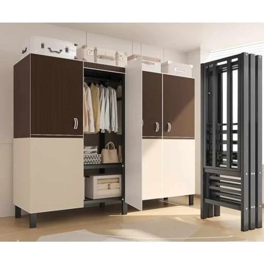 heavy-duty Portable Wardrobe Closet Hanging Organization Metal Frame 4 Storage Compartments 4 Hanging Rods 4 Drawers shoe rack