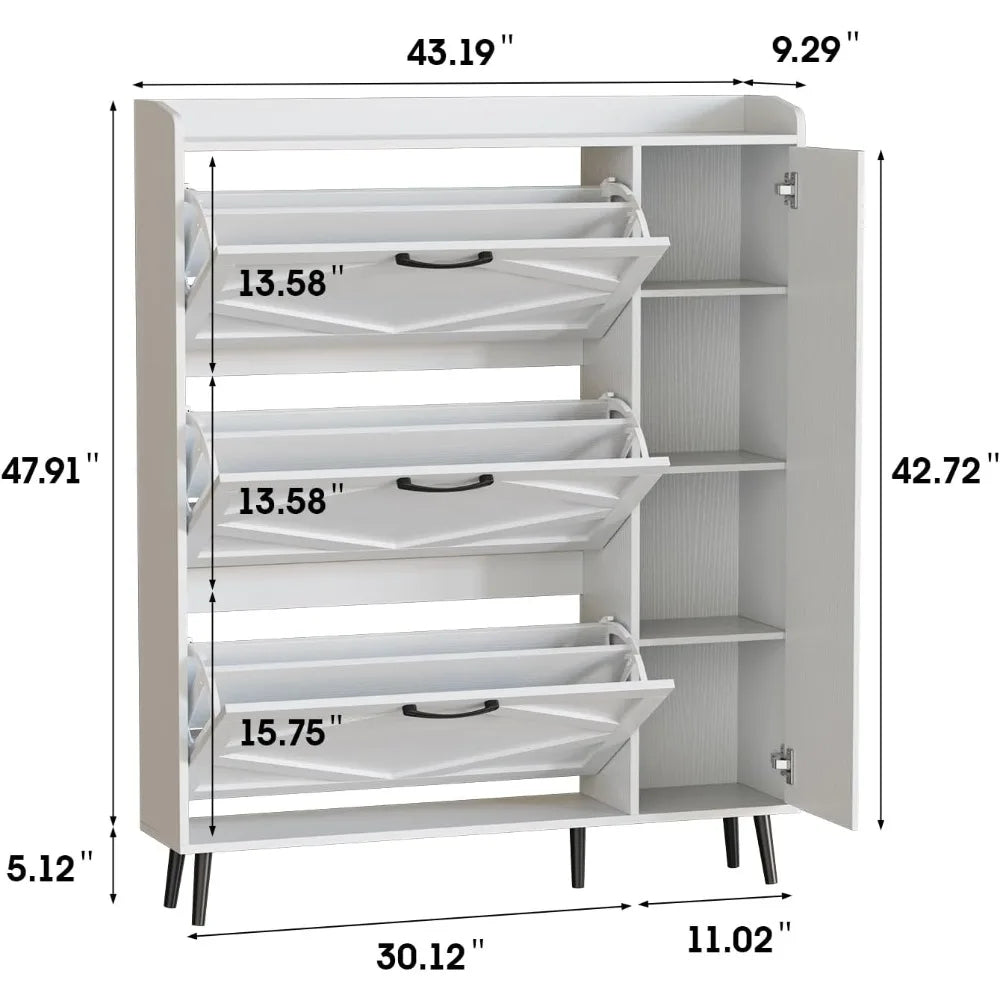 "3-Drawer Shoe Organizer Cabinet for Entryway with Adjustable Storage and Hidden Shoe Storage"
