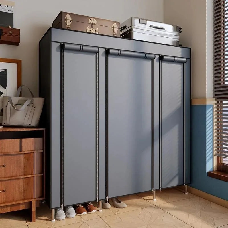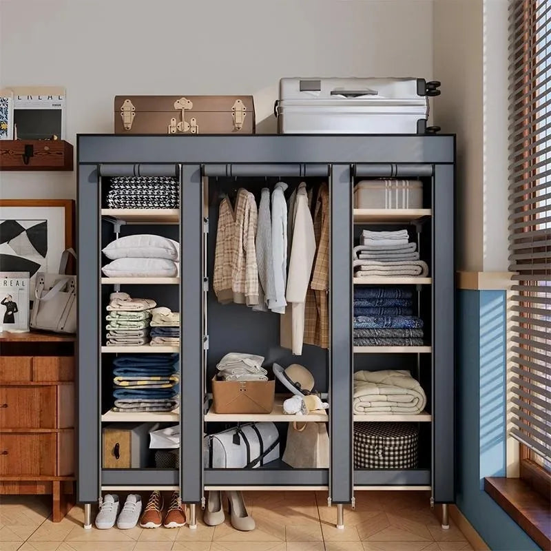 Portable Wardrobe with Steel Frame Easy Assembly Dustproof 11 Storage Spaces 1 Hanging Area Shoe Cabinet for Home Organization