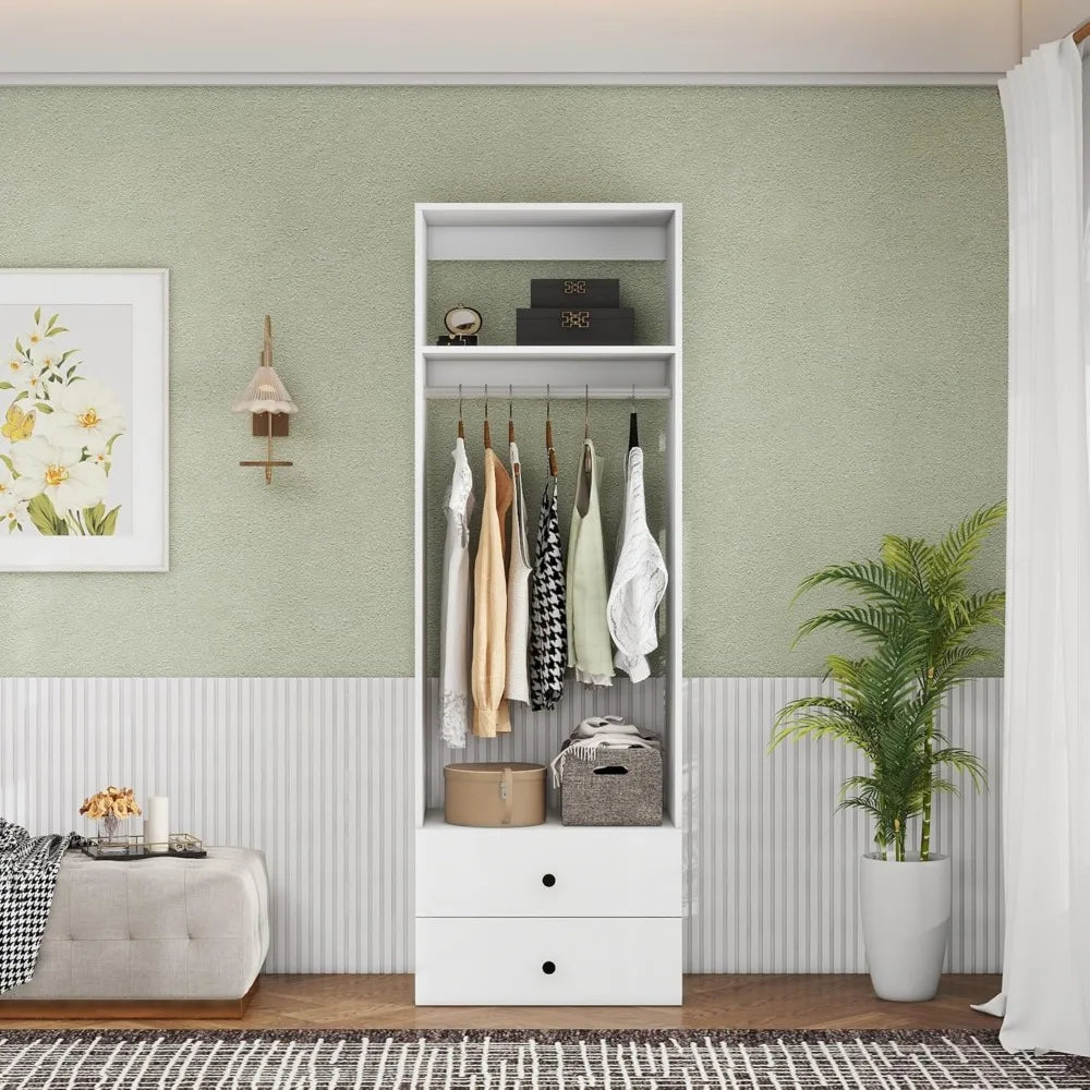 Modern Walk-In Closet System with Shelves, Drawers, and Hanging Rod for Bedroom and Hallway Storage Solutions