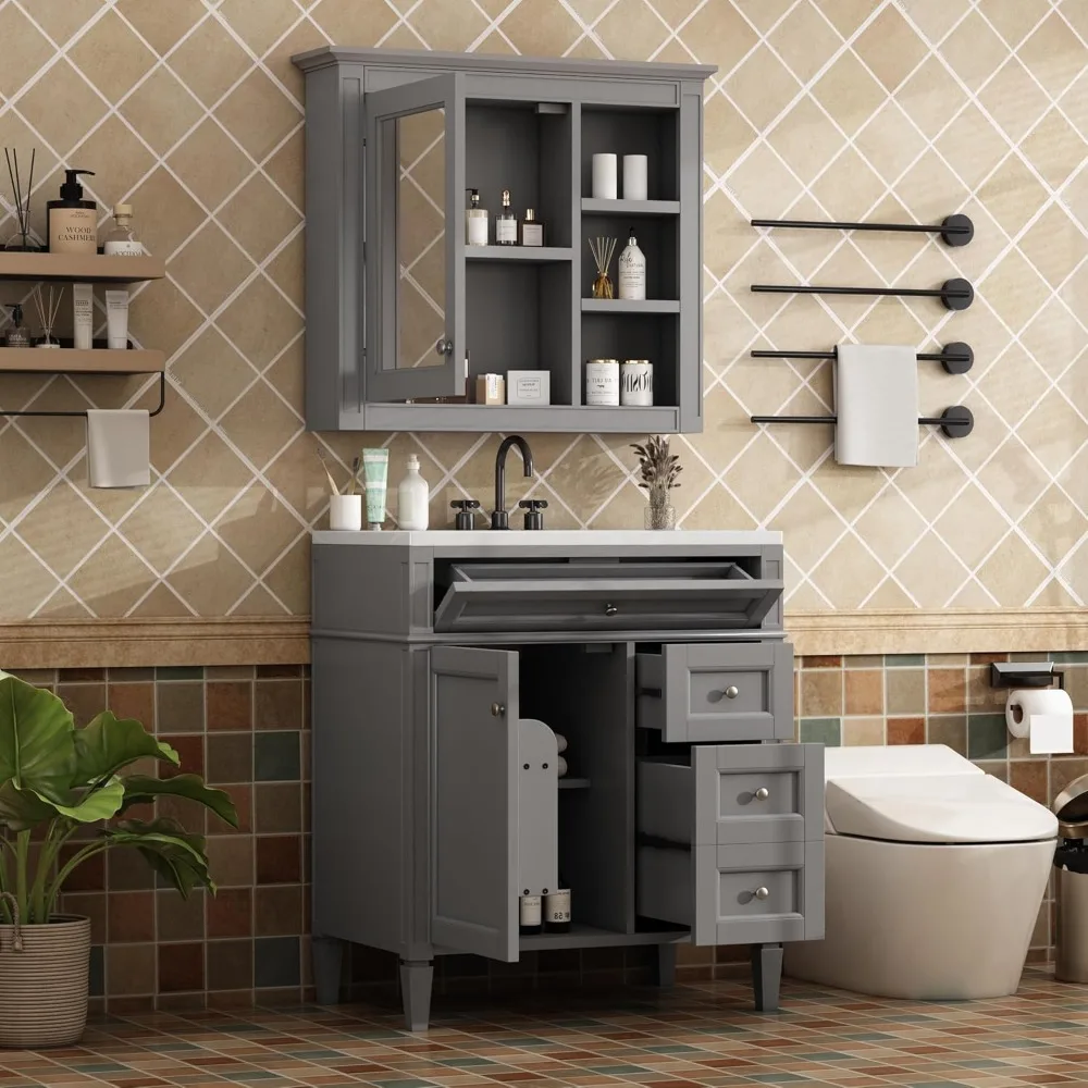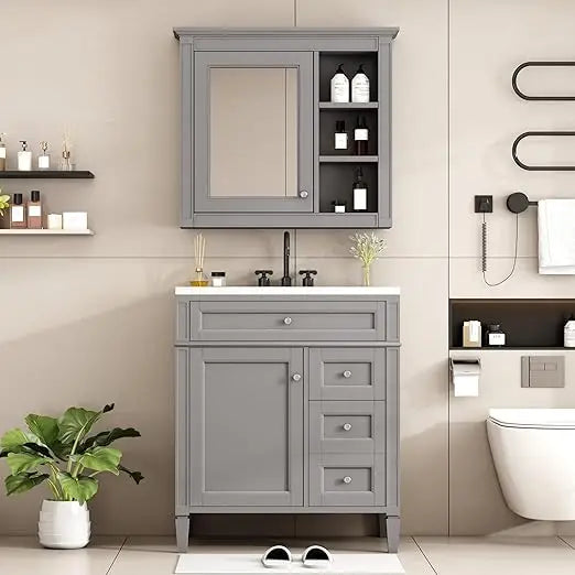 - Elegant & Modern Design: Our bathroom vanity captures clean lines, crisp geometry and contrasting use of mix material and color. With its classic, traditional style, and spacious storage options, this freestanding vanity is the perfect addition to any bathroom.