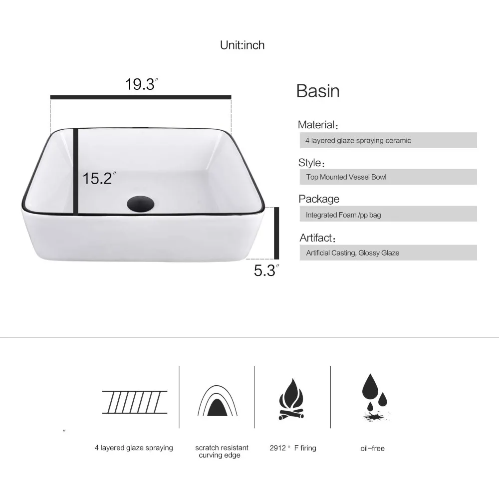 - 【Simple but Stylish】The classic black and white color clash makes our Bathroom Vanity look more stylish and modern. The simplicity of the design allows Bathroom Vanity to fit into every style of bathroom decor.
