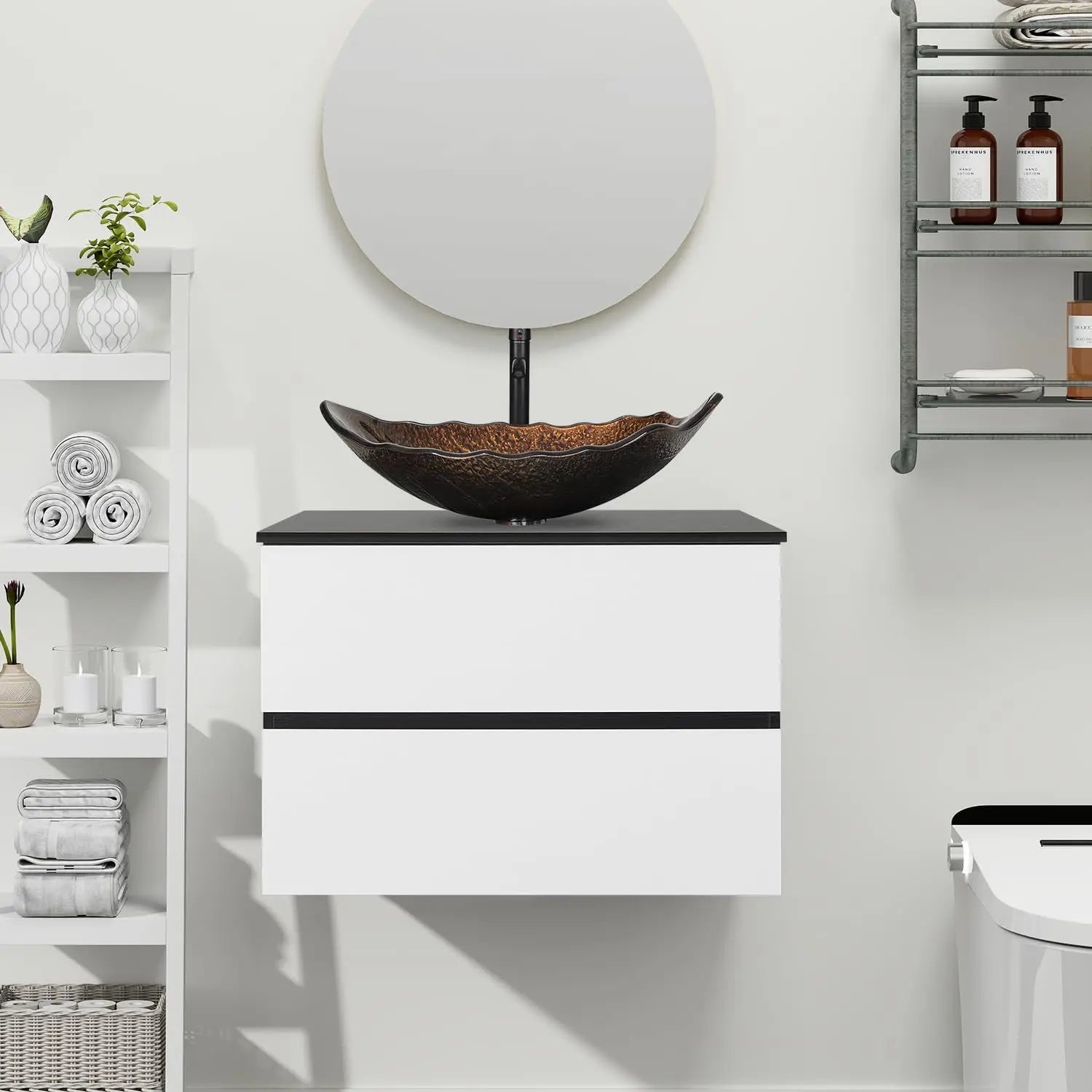 - 【A Large and Tidy Bathroom】The floating design makes Bathroom Vanity won't take up too much space in your bathroom, visually your bathroom will look bigger. This design also makes it easier for you to clean your bathroom, giving you a neat and spacious bathroom experience.