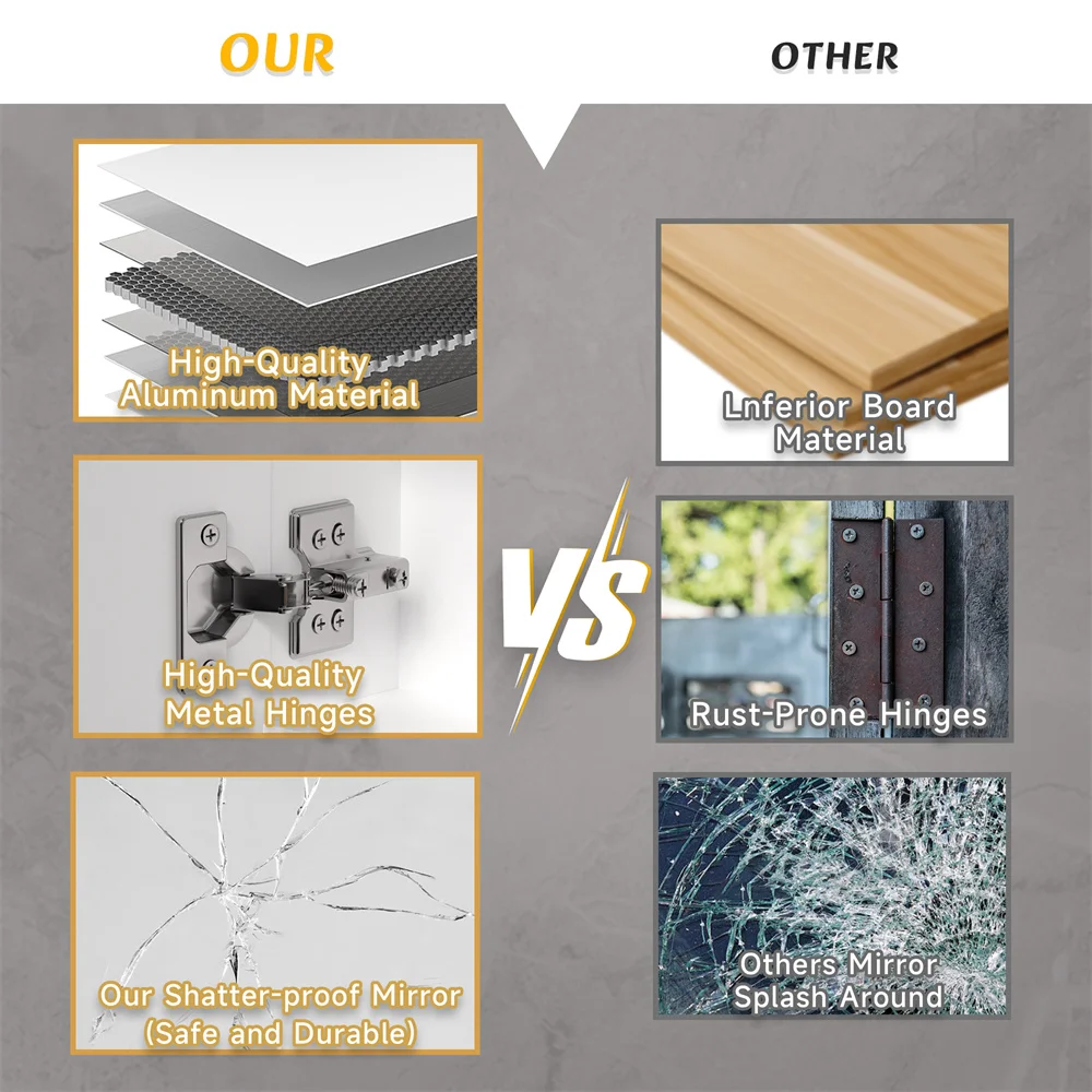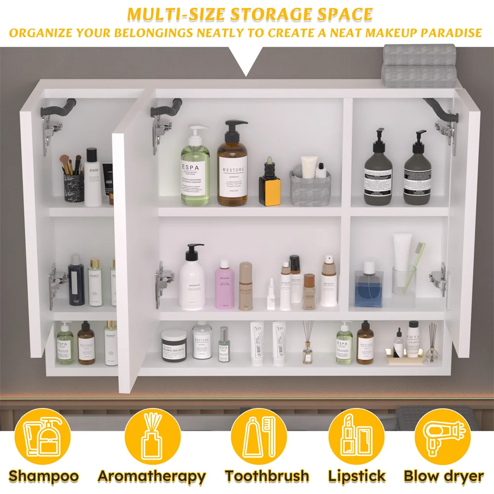 This medicine cabinet has two layers of hidden storage compartments inside and one layer of storage compartments outside, which can meet your different storage needs.