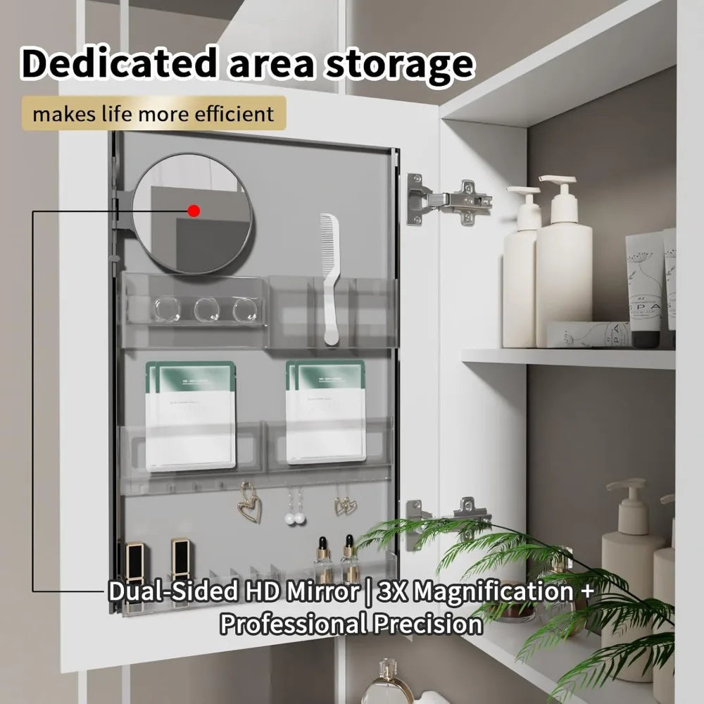 - 【Easy Installation & Services】All the accessories of this one-piece 3 doors mirror medicine cabinet organizer& bathroom vanity are included with detailed illustrated instructions, each component is labeled with a serial number and the manual provides clear step-by-step instructions for easy installation; if you have any questions, please feel free to contact us, is always ready to serve you and provide you with the most satisfactory solutions.