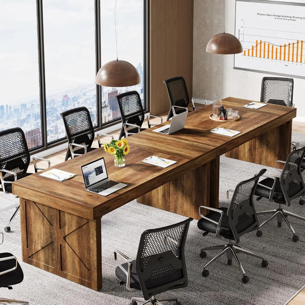 This meeting table is designed to maximize productivity with its generous dimensions of 62.99 inches in length, 31.49 inches in width, and 29.52 inches in height. It provides ample space for team collaboration or individual work, ensuring comfortable interaction and effective productivity. The conference table combines office elegance with performance, featuring a thoughtfully crafted design that facilitates ease of use, allowing participants to concentrate on discussions without any distractions. Its practical design enhances office efficiency by promoting seamless collaboration and productive conversations, with a spacious surface that can accommodate multiple users, fostering interaction and brainstorming. The 6-foot rectangular conference table is a versatile addition to any modern office, blending functionality with style, and catering to various office activities, including work, meetings, and social events. Purchase with confidence, as the package includes all necessary installation hardware tools and instructions for effortless assembly. Professional customer service is also provided for any inquiries or assistance you may need.