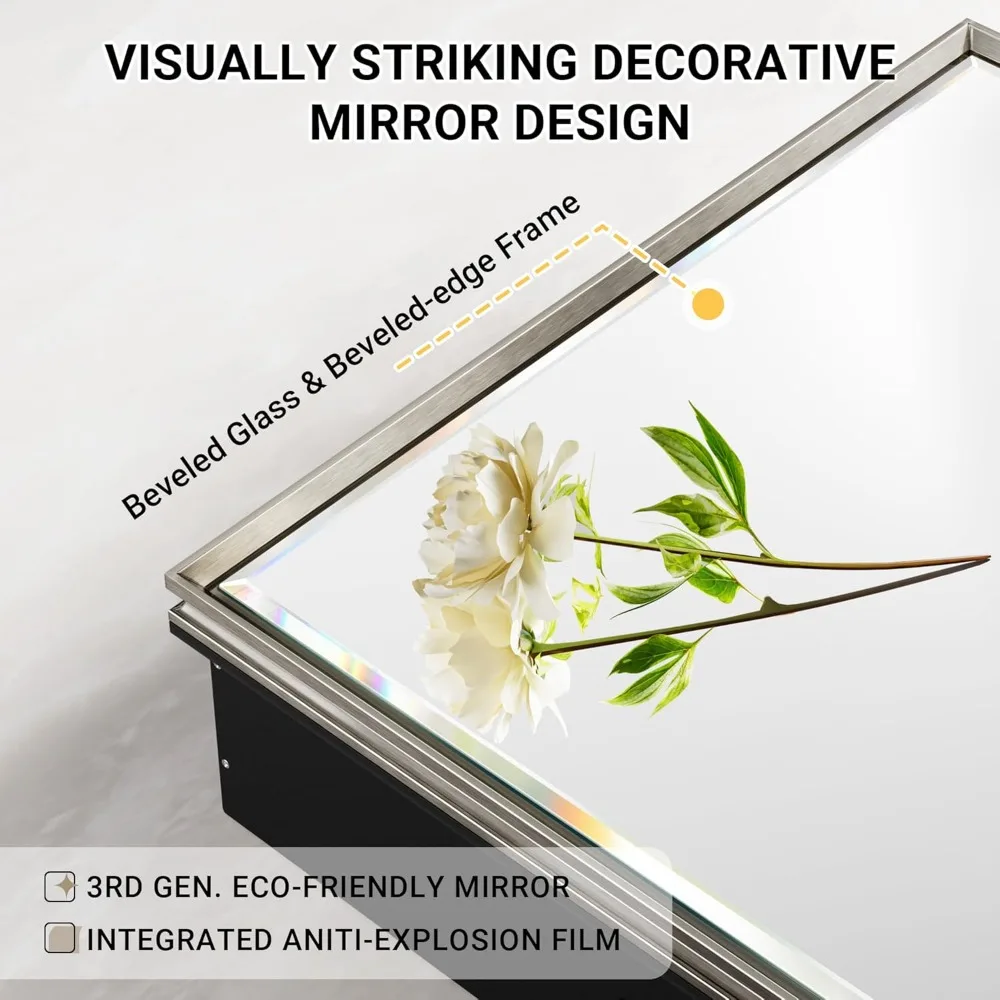 - 【A Modern Elegant Decoration】The beveled mirror creates a stunning floating effect, complemented by a classic brushed nickel mirror frame, adding a modern and sophisticated touch to any bathroom.