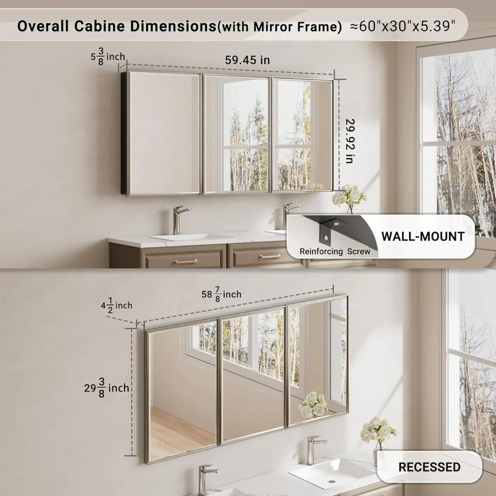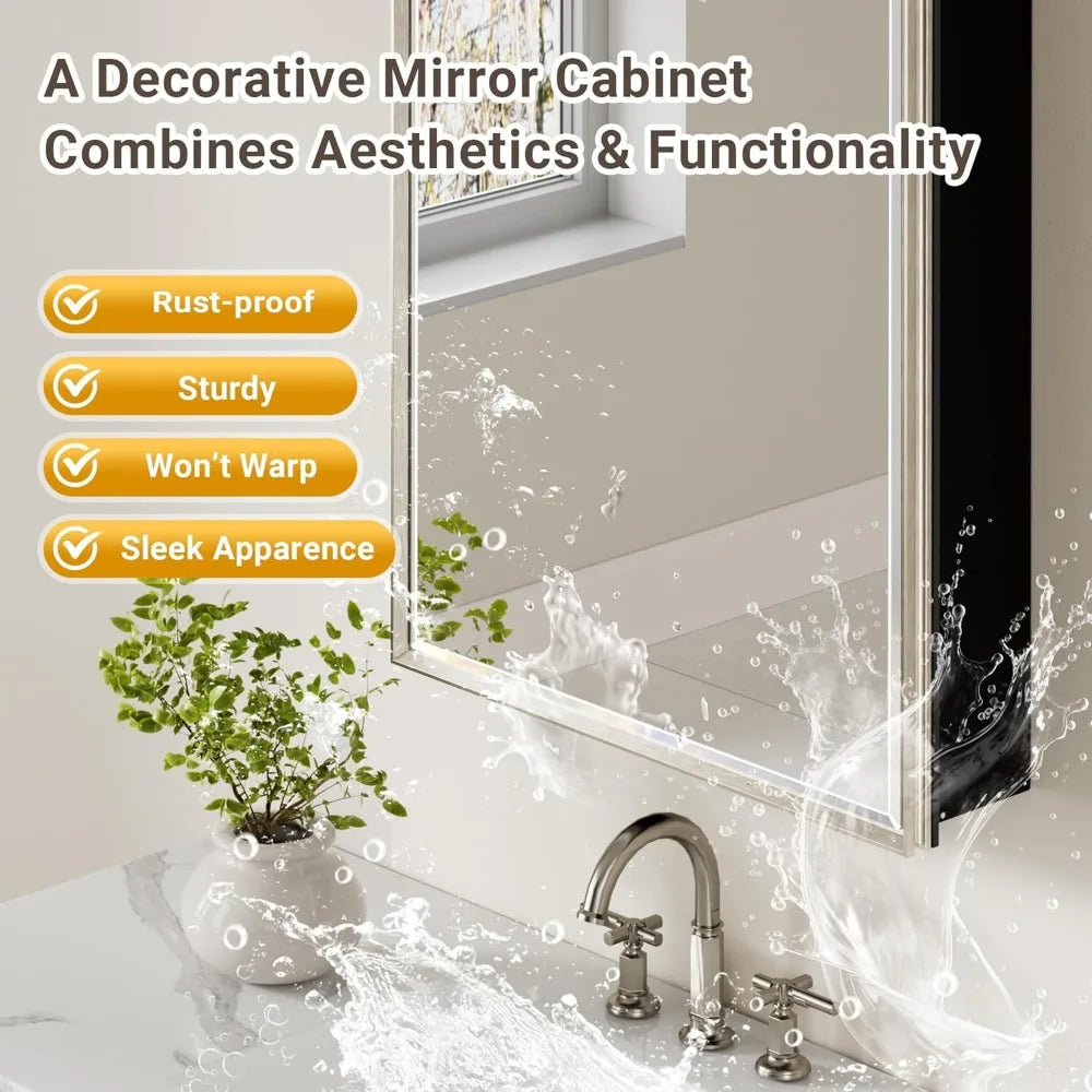 - 【Rust-proof & Durable All-Aluminum Cabinet】Both the cabinet body and mirror frame are made of IP54 anodized aluminum, ensuring strength, water resistance, and rust-proof qualities, making it ideal for humid environments like bathrooms. Aluminum is lighter than other metals, ensuring safe wall installation.