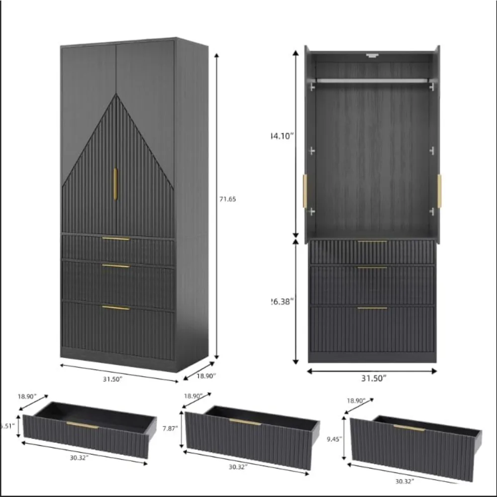 - 【Easy to Assemble】This large wooden wardrobe comes in only 1 box, with all labeled pieces, installation tools, and clear instructions for quick assembly. Following the attached manuals step by step can help you complete the assembly easily. If you have any questions, please feel free to contact us. Overall size : 31.5"(L)x18.9"(W)x71.7"(H).