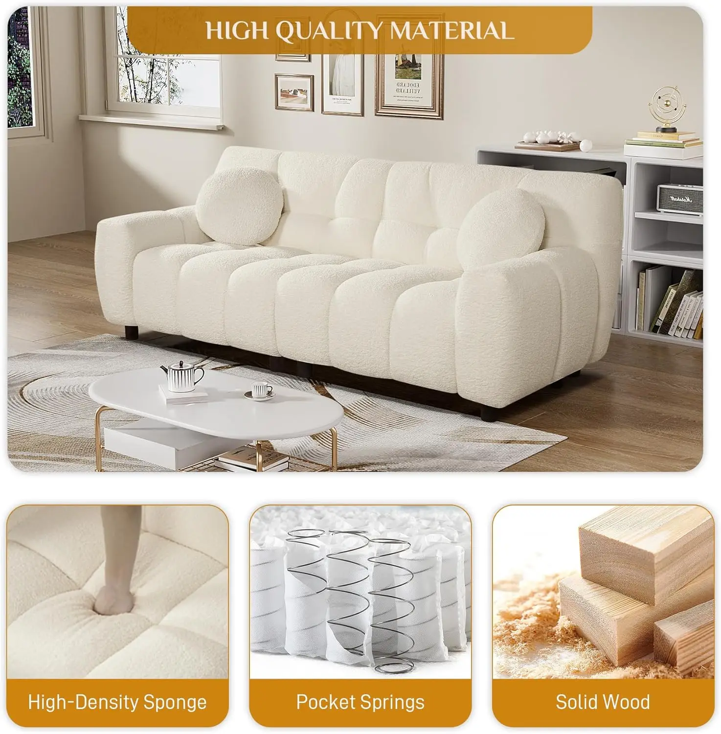 - Sturdy & Stable Structure: Marshmallow sherpa couch is built to last with solid wood frame and sturdy plastic legs, ensuring stability and durability. Sink lazily into this boucle loveseat whether you're watching films or unwinding after a long day