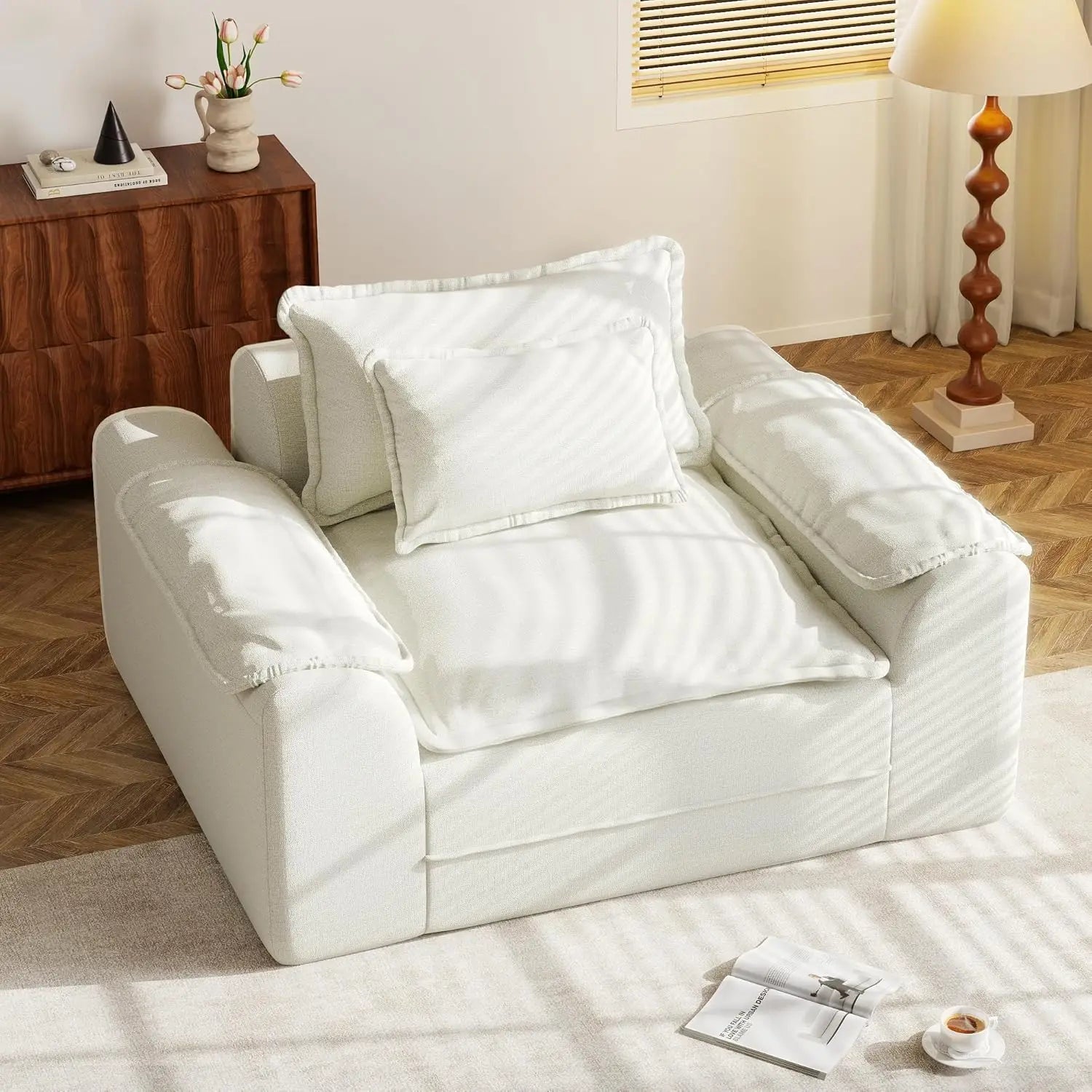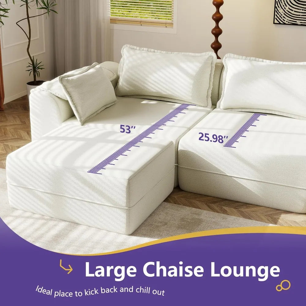- Instantant Enjoyment: Enjoy the convenience of a no-assembly-required setup. Our 3-seater couch with ottoman will shipped in three boxes and they may deliver separately. Unpack, unwind, and let it rest for 72 hours to fully embrace its plush form. With its oversized design, our cloud sofa couch offers ample seating space for you and your loved ones.