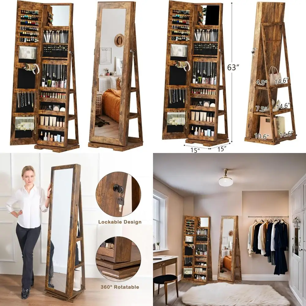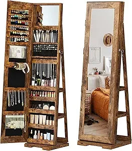 - 【Sturdy & Quality Material】This lockable standing mirror with jewelry storage outer frame is made of high hardness custom wood, quality MDF; the interior is made of soft black velvet lining; damp proof surface, environment friendly, lacquer-free and P2 standard. Its chic and stylish design will fit with your home/bedroom/living room/entryway decor and make your life more convenient and self-consistent.