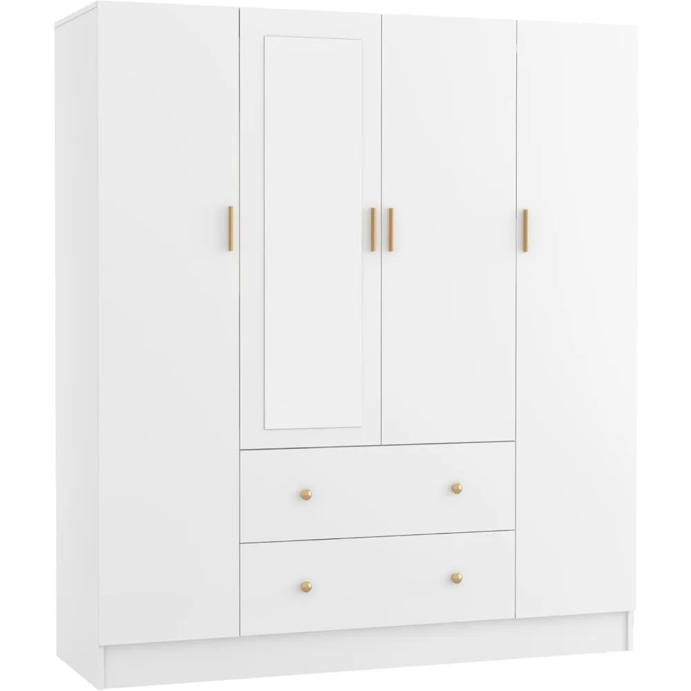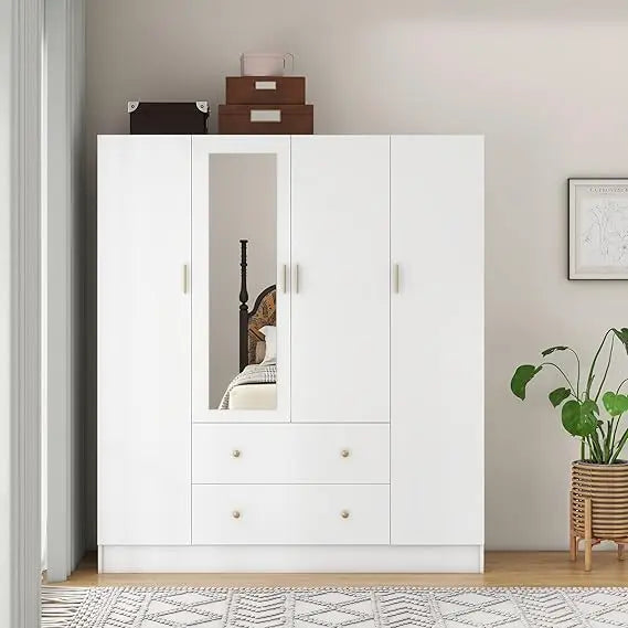 This wardrobe boasts a sleek, modern design that adds a touch of elegance and sophistication to any bedroom. It offers ample storage with large shelves and hanging rods, perfect for keeping clothing, accessories, and other essentials organized. The two additional drawers provide convenient storage for smaller items. Constructed from high-quality MDF, this wardrobe is built for durability and long-lasting use. The integrated mirror on the door enhances its functionality, allowing for easy outfit checks and appearance adjustments without needing a separate mirror. Assembly is a breeze with clear instructions and all necessary hardware included, making the setup process simple and hassle-free.