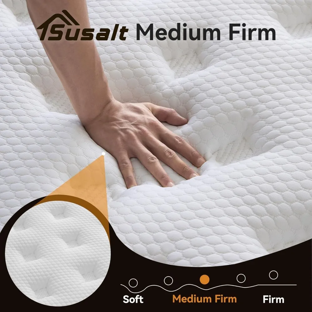 This full-size black and white mattress boasts a chic peak pattern, embodying a modern and cutting-edge aesthetic. It is designed with seven ergonomic zones and varying spring strength to relieve muscle tension. Over 600 springs offer targeted support, preserving the natural curvature of your spine, which helps to alleviate back pain and prevent spinal problems, ensuring a comfortable and healthy sleep. The mattress is crafted with a blend of 300G polyester and cooling memory foam, providing a cozy sleep surface. Its innovative 3D mesh fabric is both breathable and moisture-wicking, allowing air to circulate freely, creating a cloud-like sensation and overall comfort. At 12 inches, this hybrid mattress combines medium-firm memory foam with individual pocket springs and a high-density soundproof layer, effectively reducing noise. This ensures a peaceful night's sleep, whether you share your bed with a pet or a partner. The mattress features double rows of springs and reinforced edges, expanding your sleeping area. The reinforced edges not only extend the mattress's lifespan but also maintain its shape, providing smooth transitions for those with limited mobility, allowing you to fully utilize the bed's space. Attention to detail is evident with the inclusion of armrests for ease of movement and enhanced flexibility. The armrests have an anti-slip surface, matching the mattress's overall design. The mattress undergoes rigorous testing for fire resistance and long-term stability, ensuring safety. We prioritize customer satisfaction, offering a 100-night trial and a 10-year warranty on our 12-inch mattresses. Our 24/7 customer support team is committed to responding promptly within 24 hours. All materials are free from fiberglass and are selected with care, certified by CertiPUR-US and OEKO-TEX STANDARD 100, guaranteeing quality that is beneficial to both you and the environment.