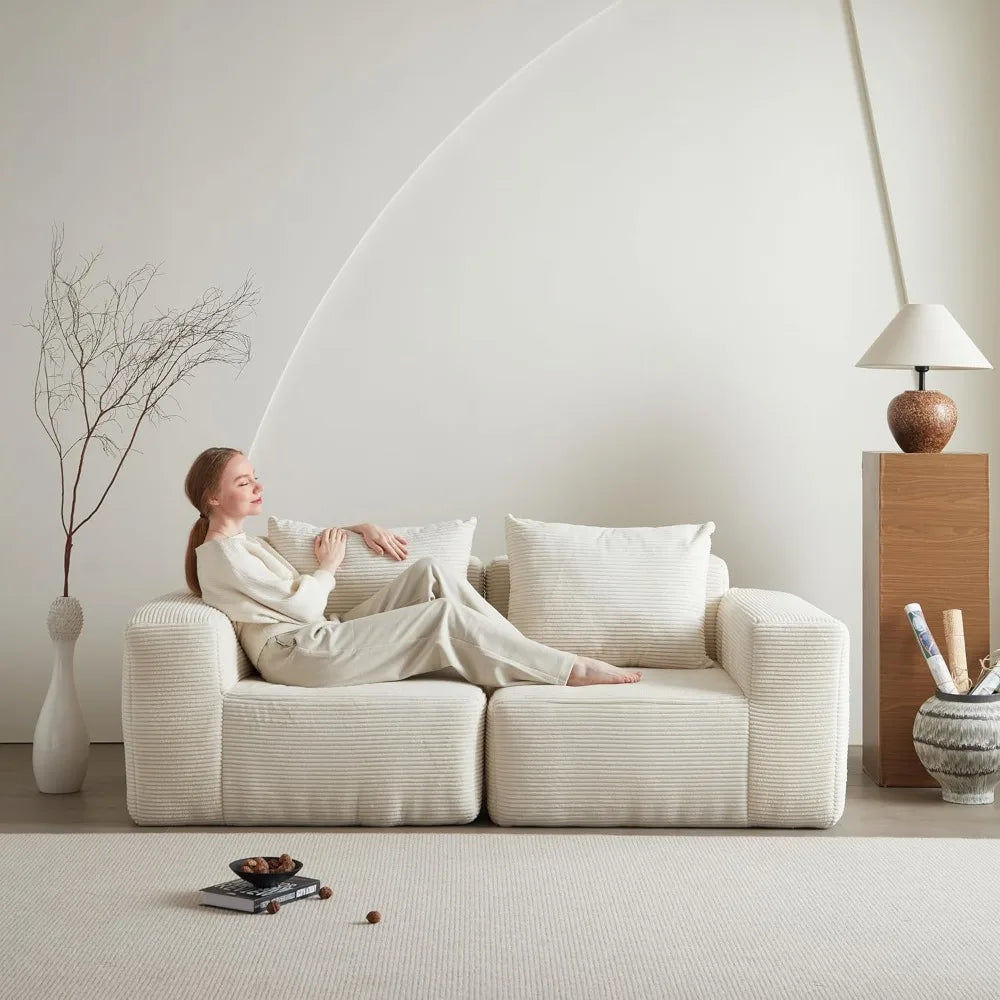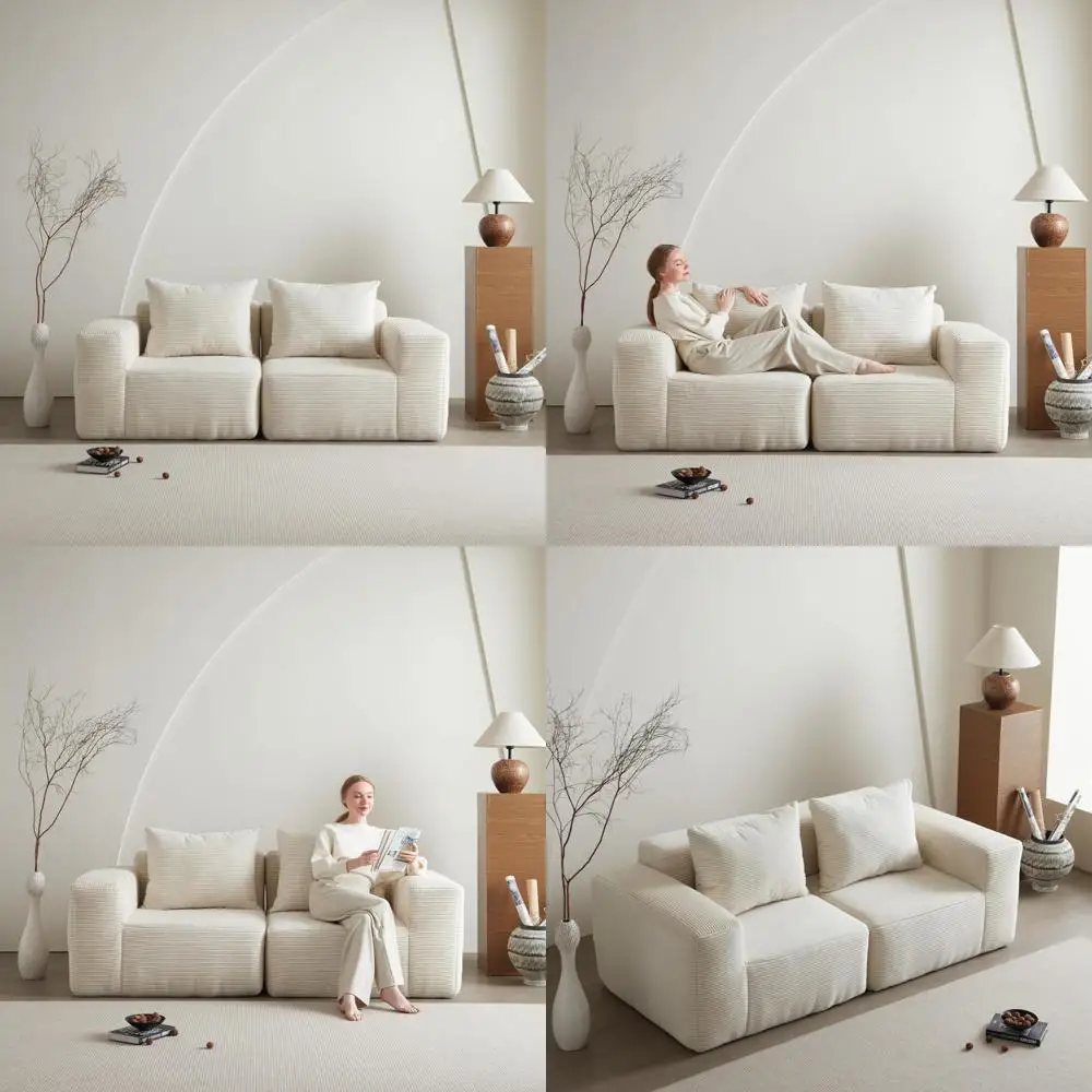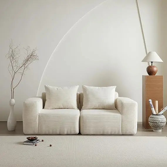 This product features a modular and versatile design, allowing it to function as two individual seats or be combined into a single, spacious loveseat. It is ideal for use in apartments, studios, and living rooms. The sofa is crafted with a soft corduroy fabric that is both comfortable and skin-friendly, adding a touch of elegance to your home decor. It boasts high-density foam cushioning, which offers excellent support and ensures long-lasting comfort without the cushions sagging, making it perfect for extended periods of lounging. The frame is sturdy and durable, providing stability and reliability for everyday use. Additionally, the sofa is lightweight and easy to move, making it a flexible choice for small spaces and those who rent their homes.