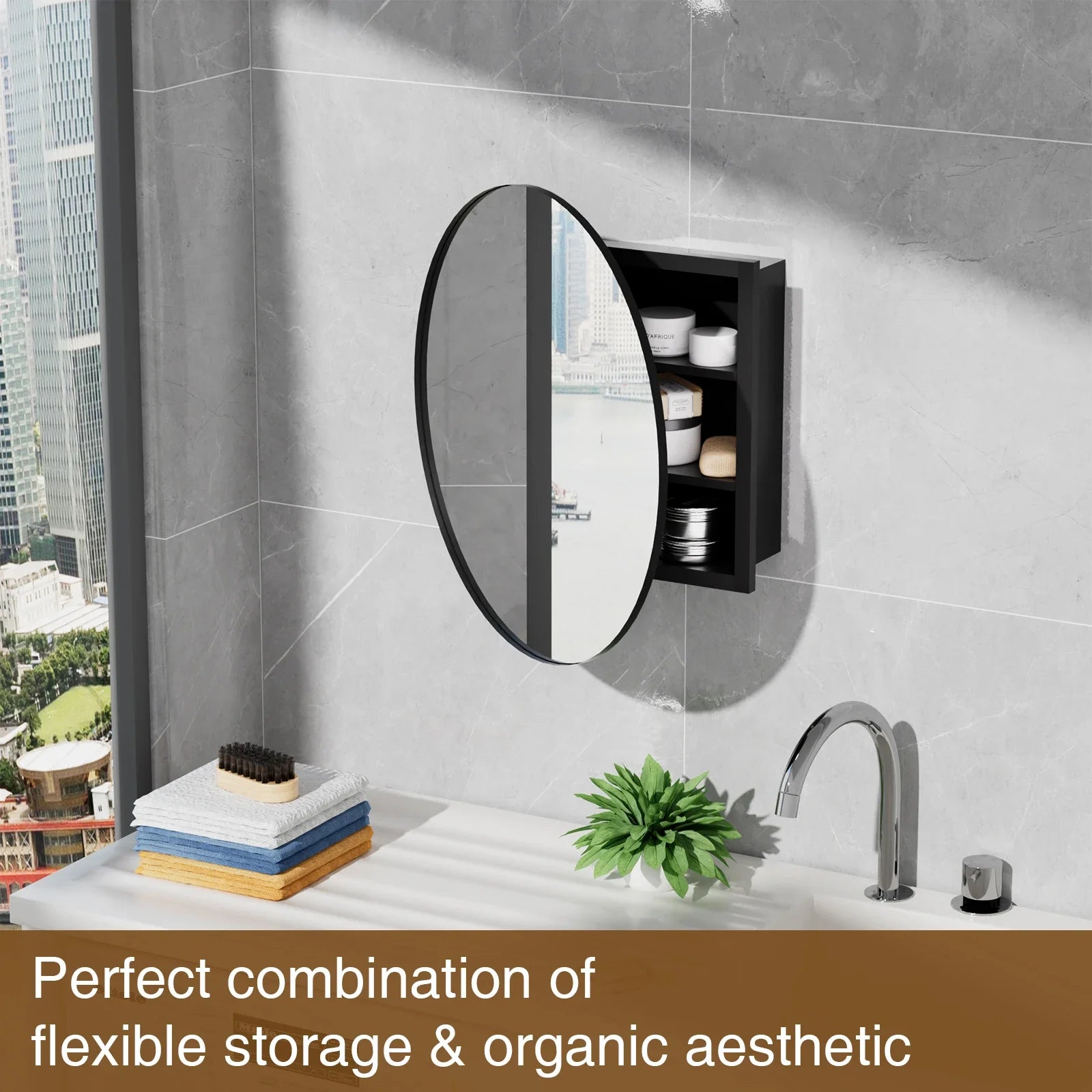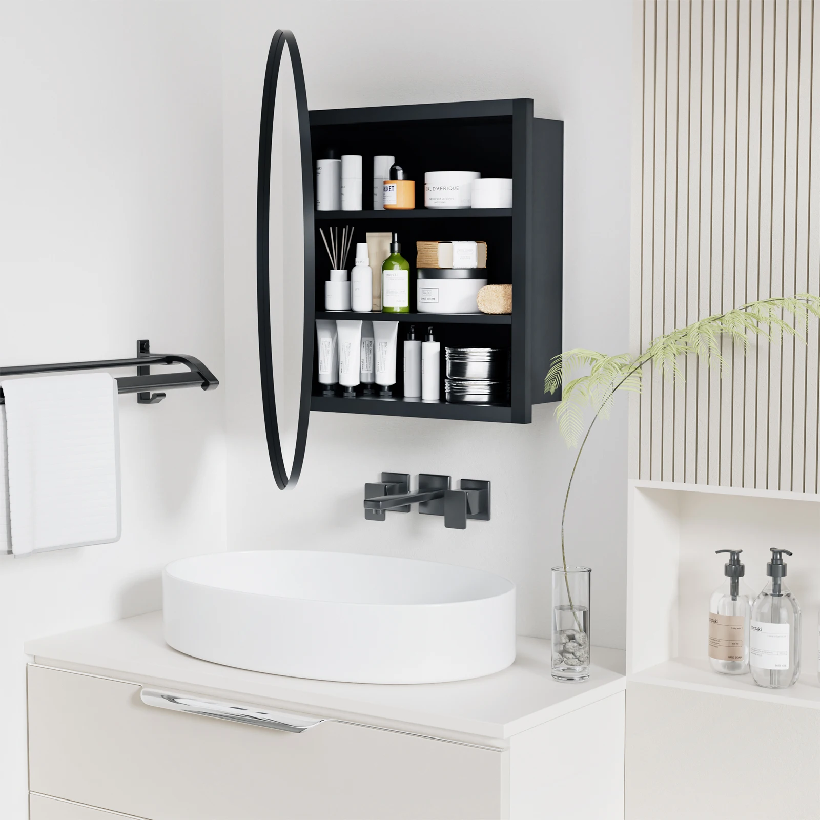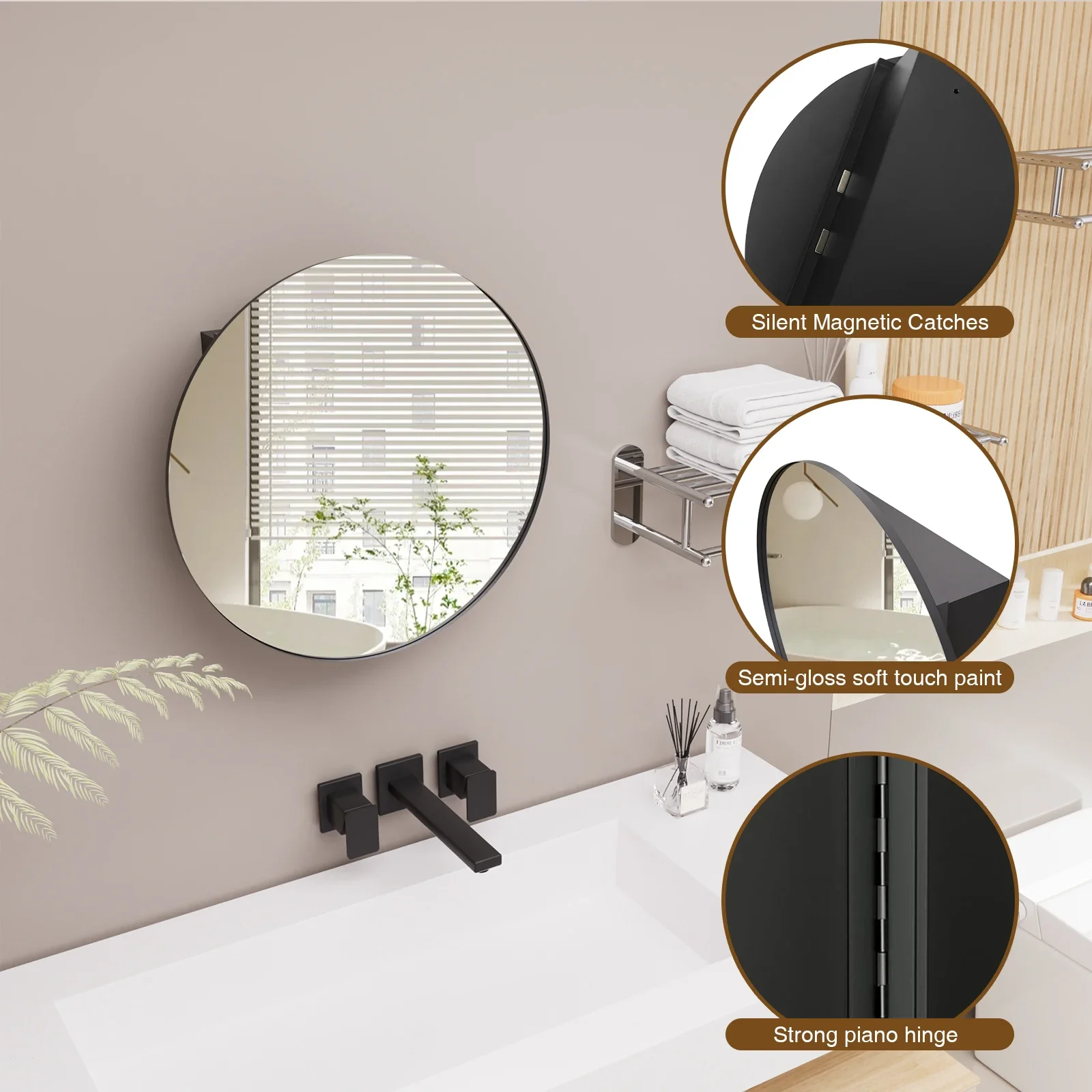 Elegant and delicate style: in addition to being practical furniture, this round wall storage cabinet combine an elegant style to decorate your bathroom, kitchen, entryway or other places in your home. The black finish and single door design can perfectly integrate various decorative styles.
