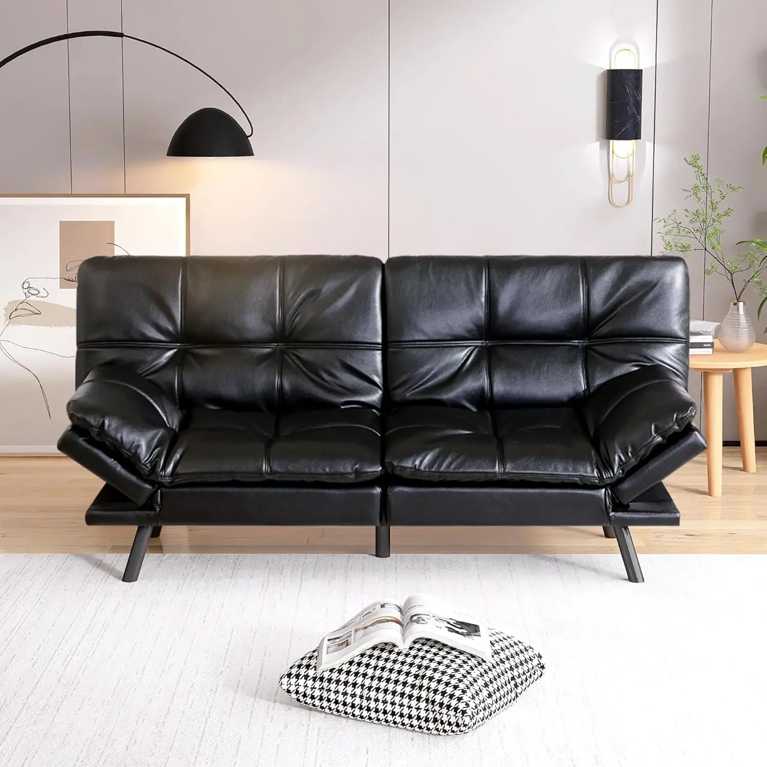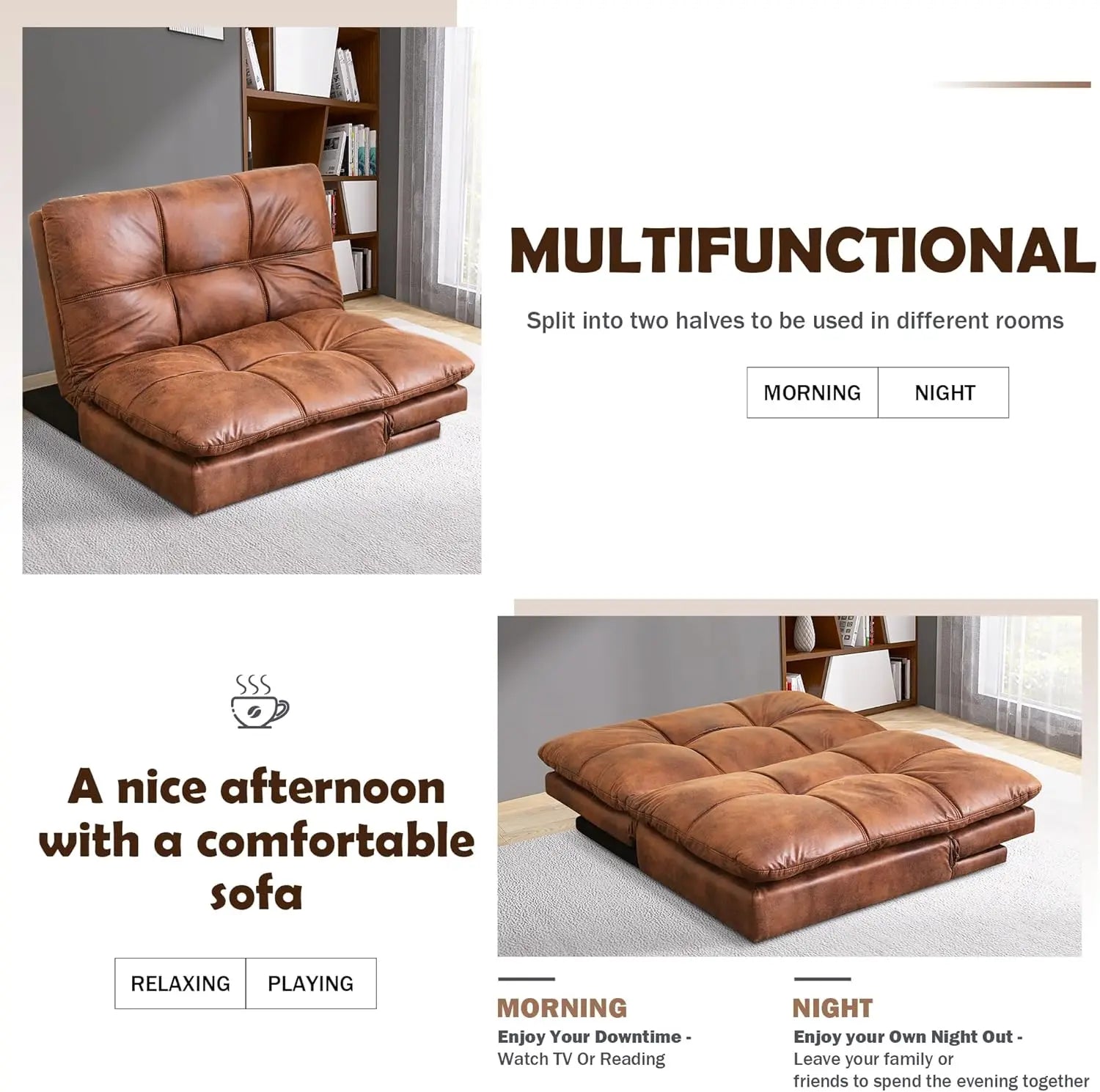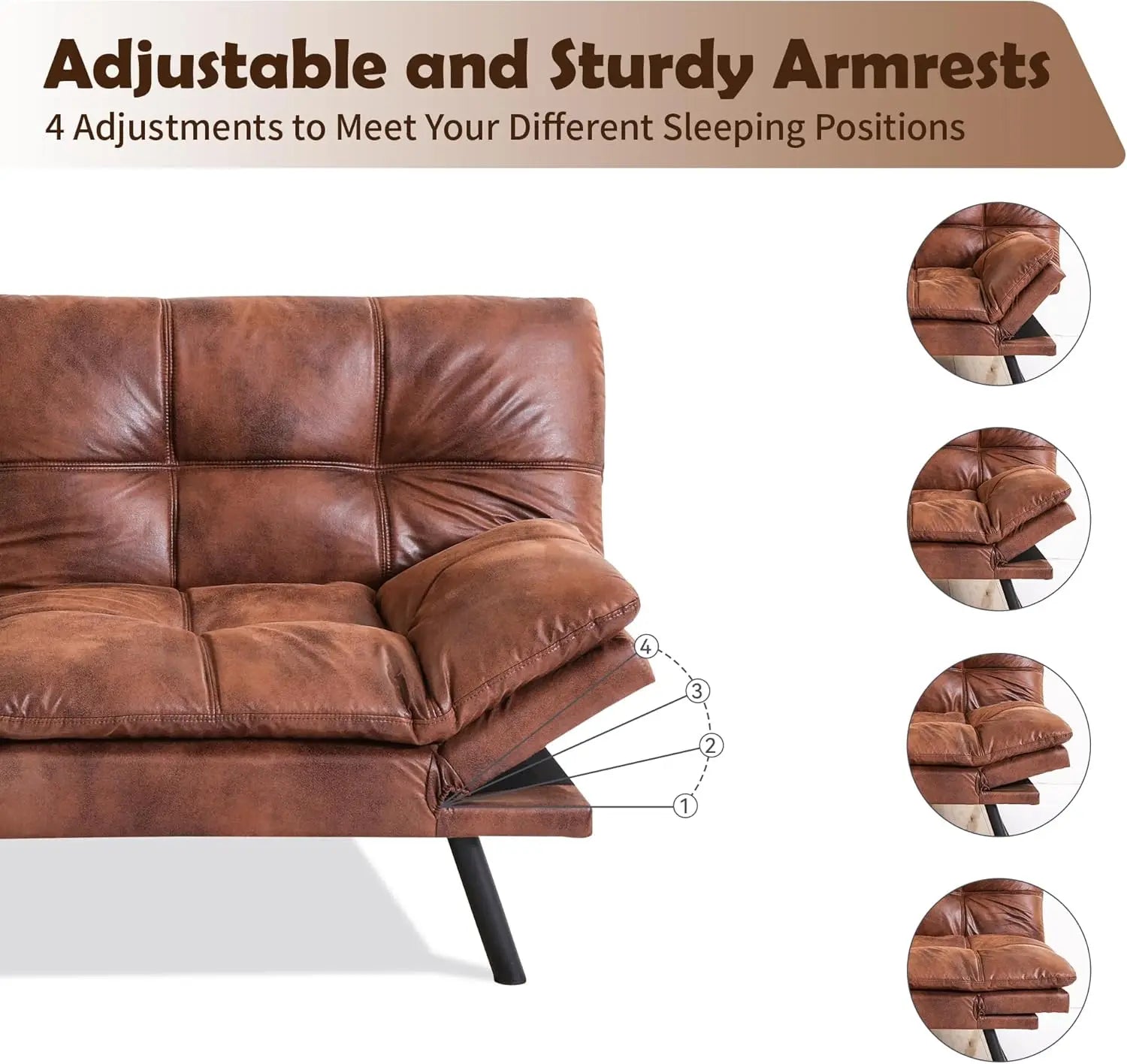 Optimal Comfort Sofa: Sink into the leather cushioning of our futon sofa bed and experience unparalleled comfort. The high-density foam offers optimal support for your back, neck, and legs, ensuring a cozy and relaxing experience throughout the day.